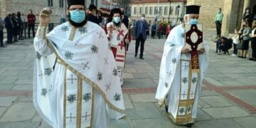 Οι πιστοί παρέμειναν έξω από το Ναό και προσκύνησαν.