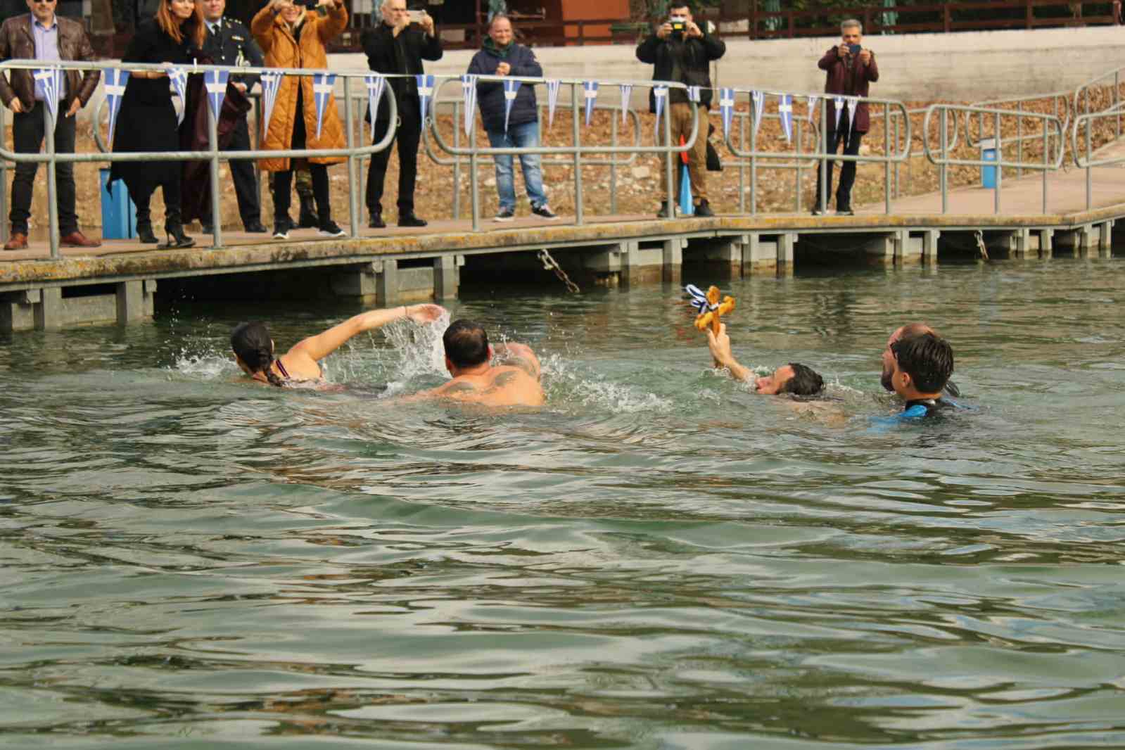 Η τελετή καθαγιασμού των υδάτων πραγματοποιήθηκε στις 12:15 μ.μ., παρουσία πλήθους πολιτών που προσήλθαν για να τιμήσουν μία από τις σημαντικότερες εορτές της Ορθοδοξίας. Τον αγιασμό των υδάτων και τη ρίψη του Τιμίου Σταυρού τέλεσε ο Θεοφιλέστατος Επίσκοπος Αμφιπόλεως, Πρωτοσύγκελλος της Ιεράς Μητροπόλεως Σερβίων και Κοζάνης κ. Χριστοφόρος.