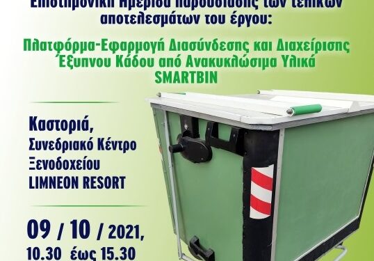Ημερίδα παρουσίασης αποτελεσμάτων για το έργο smartbin θα πραγματοποιηθεί στην Καστοριά στις 9 Οκτωβρίου 2021