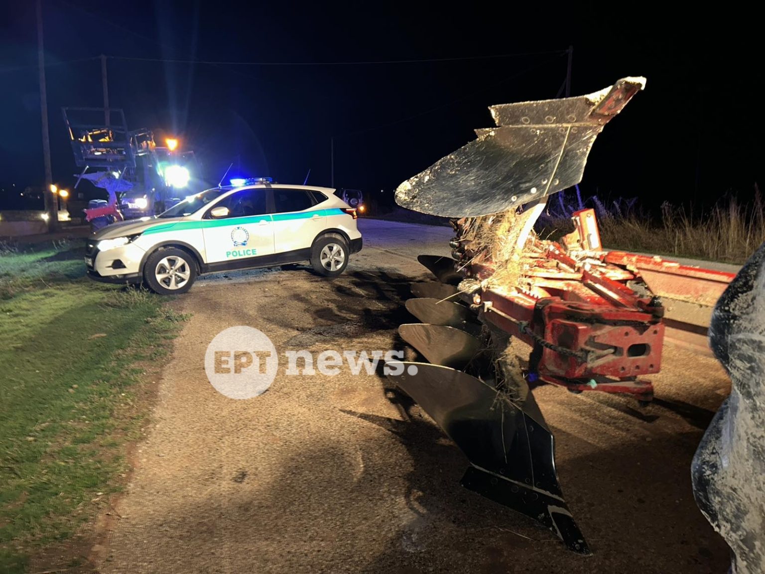 Σύμφωνα με τις πληροφορίες του ΕΡΤnews, ένα τρακτέρ το οποίο κατευθυνόταν για γεωργικές εργασίες, ακινητοποιήθηκε στην μέση του δρόμου που έχει ελλιπή φωτισμό, όταν το αλέτρι που έφερε στο πίσω μέρος του έπαθε βλάβη στα υδραυλικά του και ξεκόλλησε από την προβλεπόμενη θέση του από το γεωργικό μηχάνημα και βρέθηκε στο οδόστρωμα. Το περιστατικό έλαβε χώρα ακριβώς μετά από μια απότομη στροφή του δρόμου, σημείο με εξαιρετικά περιορισμένη ορατότητα για τους διερχόμενους οδηγούς. Ταυτόχρονα με την πτώση του αλετριού, προκλήθηκε διαρροή λαδιών από το τρακτέρ, τα οποία γέμισαν το οδόστρωμα, καθιστώντας το επικίνδυνα ολισθηρό.