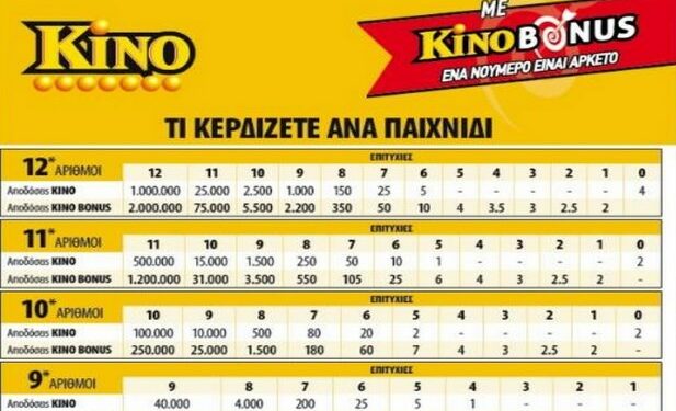 Ο τυχερός συμπολίτης μας, έπιασε 9 στους 10 αριθμούς χωρίς ΚΙΝΟ BONUS αλλά βάζοντας πολλαπλασιαστή. Το τυχερό δελτίο παίχτηκε στο Πρακτορείο ΟΠΑΠ του κ.Φώτη Σιάμου, στην οδό Κολοκοτρώνη στην Καστοριά.