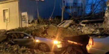 Η κατάρρευση σημειώθηκε στην οδό Μεγάλου Αλεξάνδρου και Αρτεμισίου και καταπλάκωσε δυο αυτοκίνητα, τα οποία τα διέλυσε ολοσχερώς.