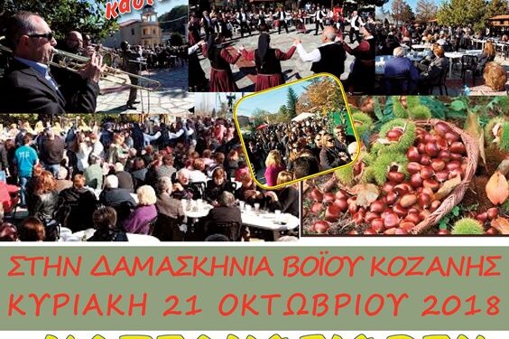 Στην Δαμασκηνιά Βοΐου θα πραγματοποιηθεί και φέτος η Καστανογιορτή την Κυριακή 21 Οκτωβρίου 2018.