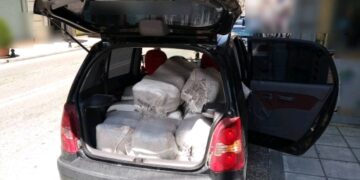 Αναλυτικότερα, στο πλαίσιο συντονισμένης δράσης για την καταπολέμηση της εισαγωγής και διακίνησης ναρκωτικών ουσιών στη χώρα και μετά από κατάλληλη αξιοποίηση στοιχείων, ακινητοποιήθηκε Ι.Χ.Ε. όχημα με οδηγό τον 54χρονο και συνοδηγό την 24χρονη όπου κατά τη διάρκεια του ελέγχου βρέθηκαν εντός αυτού οκτώ (8) τσουβάλια που περιείχαν σαράντα (40) συσκευασίες με ακατέργαστη κάνναβη, συνολικού βάρους εκατόν τεσσάρων (104) κιλών.