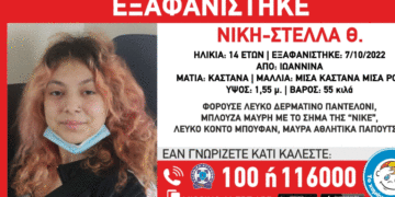 Η Νίκη-Στέλλα Θ. 14 ετών εξαφανίστηκε, από κρατική δομή παιδικής προστασίας στη Δυτική Μακεδονία στις 7/10/2022 στις 9:30 το βράδυ.