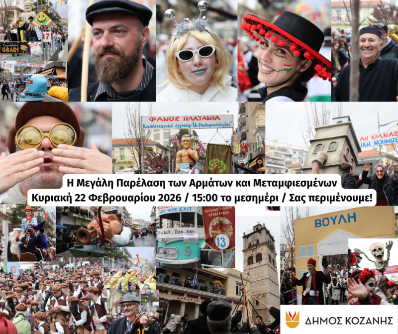 Κοζανίτικη Αποκριά 2026: Την Κυριακή 22 Φεβρουαρίου η μεγάλη Παρέλαση των Αρμάτων και Μεταμφιεσμένων στο κέντρο της Κοζάνης