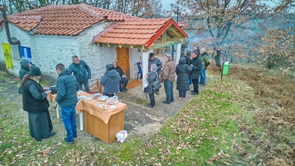 Η θεία λειτουργία τελέστηκε μέσα σε κατανυκτική ατμόσφαιρα· το λιγοστό φως των κεριών τρεμόπαιζε στα πρόσωπα των πιστών, ενώ το θυμίαμα ανέβαινε ψηλά, ανακατεύοντας την προσευχή με τη σιωπή. Εκεί, μέσα στο μικρό ξωκλήσι, ο χρόνος έμοιαζε να σταματά και οι άνθρωποι να στέκονται πιο κοντά ο ένας στον άλλον.