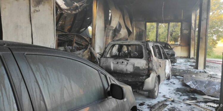 Όπως βλέπετε και στις σχετικές φωτογραφίες, η ζημιά είναι σχεδόν ολική, ενώ έχουν καεί και οχήματα που βρίσκονταν για επισκευή στο χώρο.