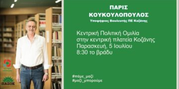 Με την κεντρική του ομιλία στην πλατεία της Κοζάνης κλείνει ο Πάρις Κουκουλόπουλος την προεκλογική του εκστρατεία.