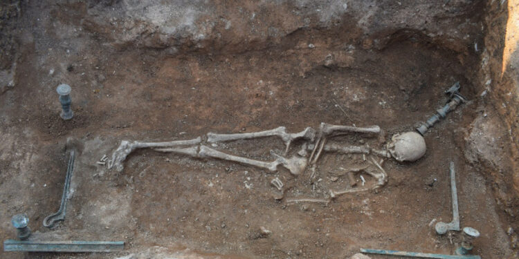 Ενώ υπήρχε στα αρχαία χρόνια η συνήθεια να τοποθετούνται νεκροί σε κλίνες, μέχρι στιγμής δεν είχε βρεθεί καμία σε όλο τον ελλαδικό χώρο και στην ευρύτερη περιοχή. «Έχουν βρεθεί πόδια ή εξαρτήματα κλινών, χάλκινα και είναι τα μόνα που έχουν διατηρηθεί στο χρόνο, αλλά διάσπαρτα. Μέχρι τώρα δεν είχε βρεθεί μία κλίνη στη θέση της», υπογραμμίζει η κ. Χονδρογιάννη. Αυτό είναι το μοναδικό που έχει αυτό το εύρημα. Βρέθηκε in situ και είναι ακέραιη, χωρίς τα ξύλινα τμήματά της που έχουν διαλυθεί. Μέσα στο 2020 έγινε μια προσπάθεια συντήρησης ενός μέρους της, μια προκαταρκτική μελέτη των στοιχείων της, η σχεδίαση και όλες οι εργασίες που απαιτούνται για τη μελέτη του ευρήματος.