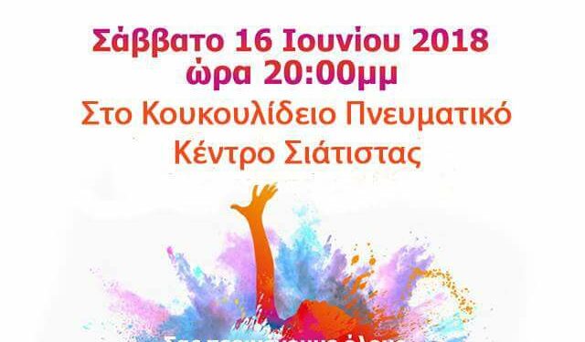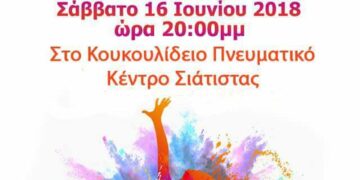 Ο Πολιτιστικός και Μορφωτικός Σύλλογος Σιάτιστας “Ο ΜΕΓΑΣ ΑΛΕΞΑΝΔΡΟΣ ” σας προσκαλεί στην μουσικοχορευτική παράσταση που διοργανώνει το Σάββατο 16 Ιουνίου 2018 και ώρα 8:00 το βράδυ στην αίθουσα του Κουκουλίδειου Πνευματικού Κέντρου Σιάτιστας.