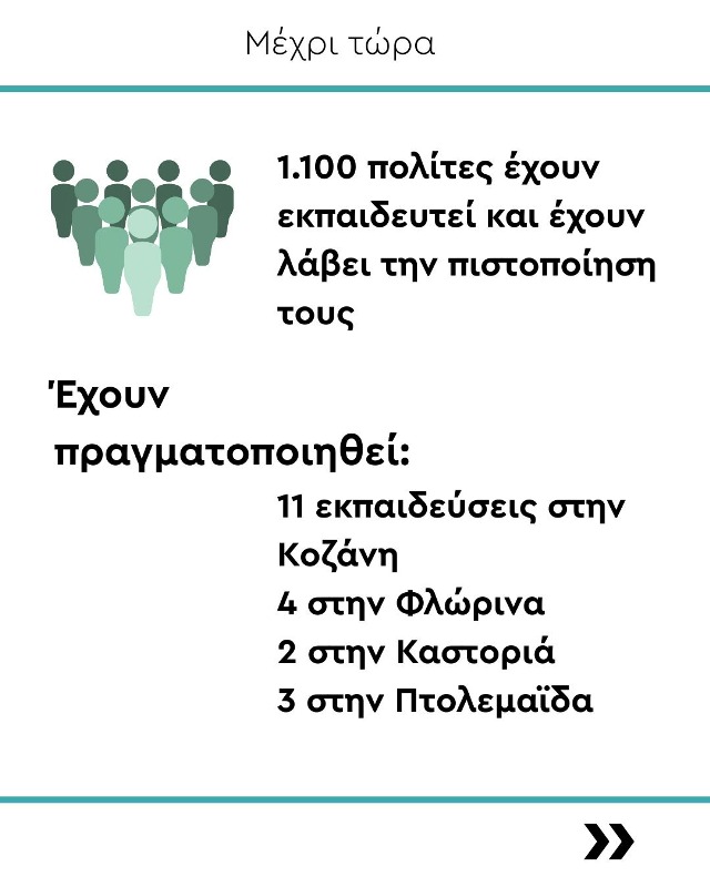 Μέχρι σήμερα, 1.100 πολίτες από όλη τη Δυτική Μακεδονία έχουν ήδη εκπαιδευτεί και λάβει την πιστοποίησή τους σε βασικές δεξιότητες παροχής πρώτων βοηθειών και χρήσης απινιδωτή.
