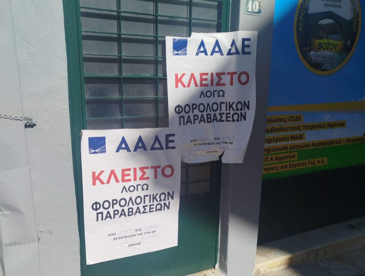 Φορολογικούς ελέγχους πραγματοποίησε κλιμάκιο της ΑΑΔΕ στον Αγροτικό Συνεταιρισμό Βοΐου (πρώην Ένωση).