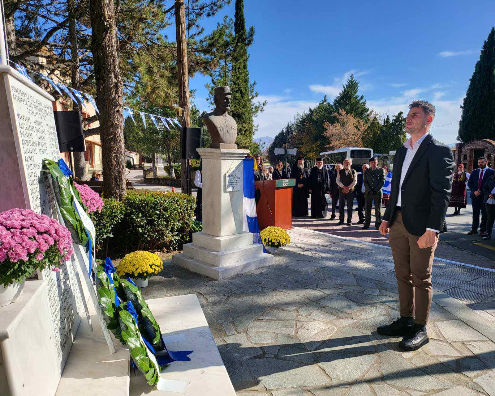 Κατέθεσαν στεφάνι ο Δήμαρχος Βοΐου Χρήστος Ζευκλής, οι Αντιπεριφερειάρχης Νικόλαος Λυσσαρίδης, εκπρόσωποι των Σωμάτων Ασφαλείας, Σχολείων και Συλλόγων.
