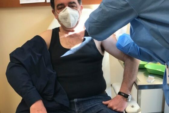 Στη φωτογραφία, ο ιδιαίτερα δραστήριος πρόεδρος της Τοπικής Κοινότητας Εράτυρας και εκτροφέας μινκ Γιώργος Βάρκας, ο οποίος εμβολιάστηκε στο Μποδοσάκειο Νοσοκομείο Πτολεμαϊδας.