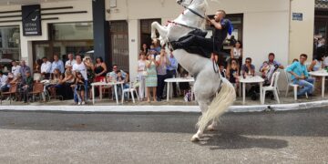 Η βροχή που έπιασε κατά τη διάρκεια της παρέλασης, αλλά και μετά δεν πτόησε τους καβαλάρηδες αλλά και τους επισκέπτες.