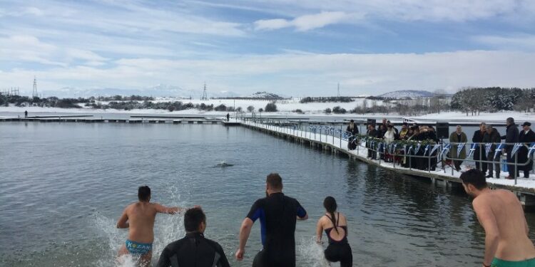 Δείτε εικόνες από τη σημερινή τελετή καθαγιασμού των υδάτων στη λίμνη Πολυφύτου και του τολμηρούς κολυμβητές