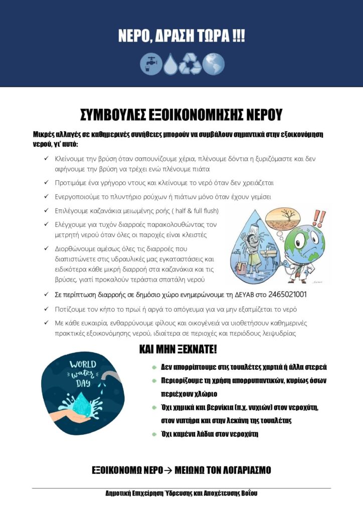 Με αφορμή την Παγκόσμια Ημέρα Νερού η ΔΕΥΑ Βοΐου προσφέρει συμβολικά σε μαθητές των Δημοτικών Σχολείων του Δήμου Βοΐου ένα παγούρι με το λογότυπο “Λιγότερο πλαστικό, περισσότερο νερό”, με στόχο την ευαισθητοποίηση για την αξία του νερού και την ανάγκη προστασίας του.