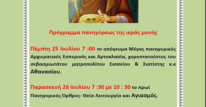 Πανήγυρις Αγίας Παρασκευής Ναμάτων
