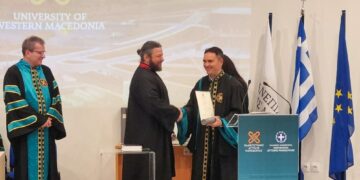 Σε πανηγυρικό κλίμα πραγματοποιήθηκε σήμερα, στο κατάμεστο αμφιθέατρο του Κτηρίου Διοίκησης, στη νέα Πανεπιστημιούπολη, στη ΖΕΠ Κοζάνης, η τελετή απονομής τιμητικής πλακέτας στον ομότιμο καθηγητή και πρώην Κοσμήτορα της Πολυτεχνικής Σχολής του Πανεπιστημίου Δυτικής Μακεδονίας κ. Αθανάσιο Τριανταφύλλου, η αναγόρευση και καθομολόγηση τριών Διδακτόρων και η ορκωμοσία αποφοίτων των Τμημάτων Μηχανολόγων Μηχανικών, Ηλεκτρολόγων Μηχανικών και Μηχανικών Υπολογιστών και Χημικών Μηχανικών.
