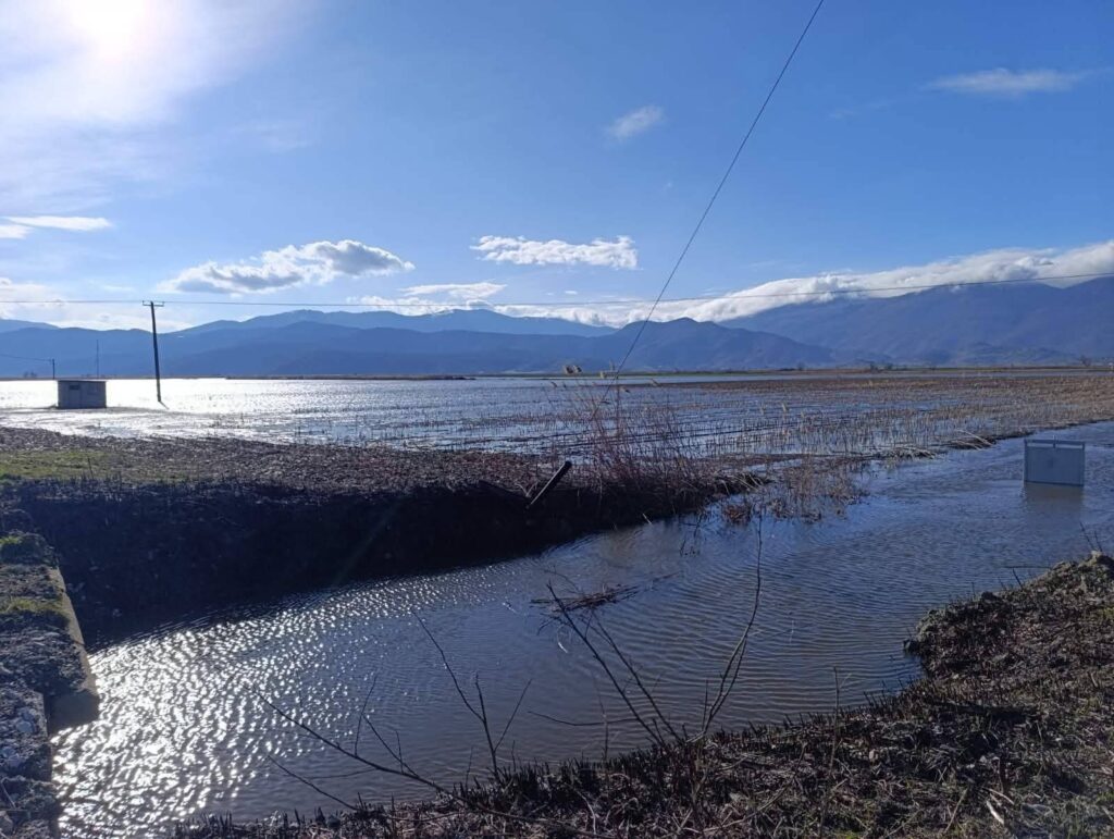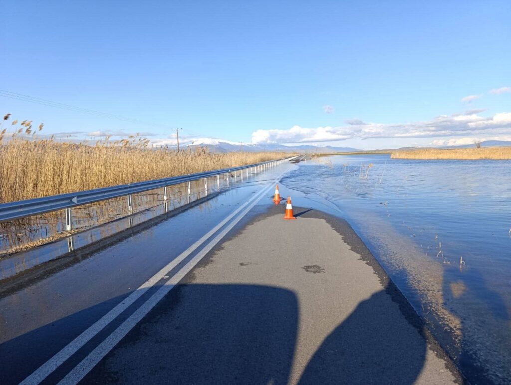 Δρόμος σύνδεσης Βαλτόνερα-Ανάργυροι στην περιοχή Αμυνταίου. Οι μεγάλες ποσότητες του νερού έχουν καλύψει εκτάσεις ενώ στο τμήμα Τρεις Γέφυρες το νερό βρίσκεται σε οριακό σημείο.