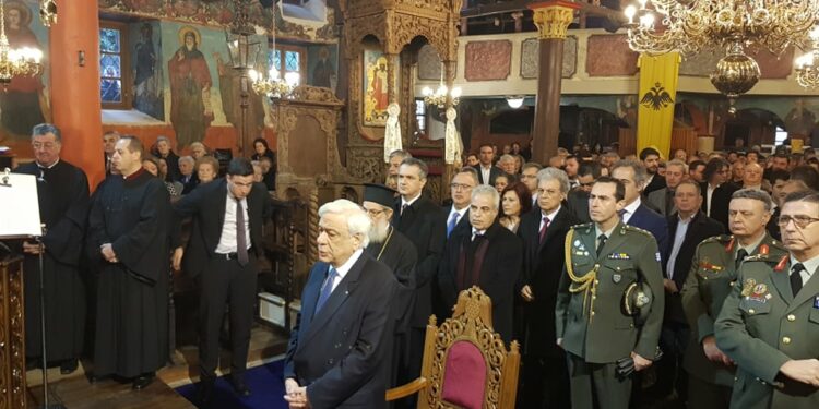 Το πρωί ο πρόεδρος της Δημοκρατίας παρέστη στη δοξολογία στον καθεδρικό ιερό ναό Κοιμήσεως της Θεοτόκου.