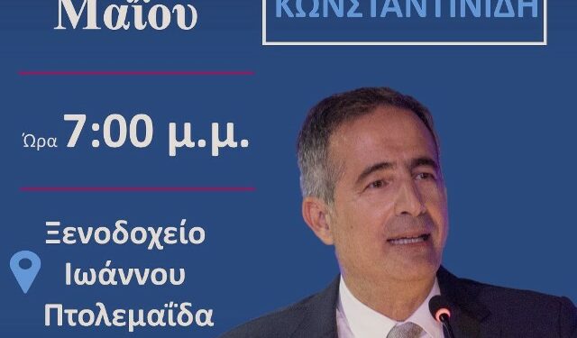 Πολιτική εκδήλωση θα πραγματοποιήσει ο Βουλευτής Ν. Κοζάνης Στάθης Κωνσταντινίδης, το Σάββατο 6 Μαΐου στις 7 μ.μ., στο ξενοδοχείο Ιωάννου στην Πτολεμαΐδα
