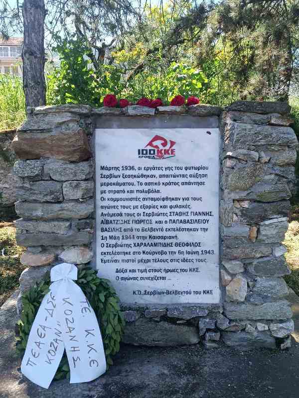 Την Κυριακή 26 Απρίλη πραγματοποιήθηκε η εκδήλωση της ΤΕ Κοζάνης του ΚΚΕ, στα Σέρβια Κοζάνης, προς τιμήν των 200 εκτελεσμένων στη Καισαριανή, ανάμεσά τους 5 κομμουνιστές από την περιοχή της Κοζάνης. Η εκδήλωση πραγματοποιήθηκε στο Φυτώριο Σερβίων, στο χώρο που το Κόμμα έχει τοποθετήσει τιμητική πλάκα προς τιμήν των εκτελεσθέντων στην Καισαριανή την 1η Μάη 1944 Γιάννη Στάθη (Σέρβια), Γιώργου Αϊβατζίδη (Σέρβια), Βασίλη Παπαβασιλείου (Βελβεντό) και του Θεόφιλου Χαραλαμπίδη ο οποίος εκτελέστηκε στο Κούρνοβο στις 6 Ιούνη 1943.