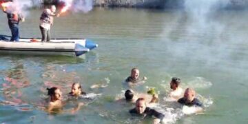 Αρκετοί ήταν οι τολμηροί κολυμβητές που βούτηξαν για το Σταυρό και έψαλαν τον εθνικό ύμνο