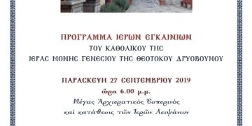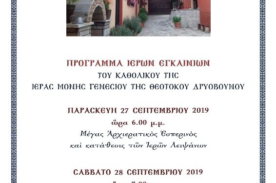 Πρόγραμμα Εγκαινίων της Ι. Μονής Γενεσίου της Θεοτόκου Δρυοβούνου
