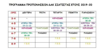 Πρόγραμμα προπονήσεων ΔΑΚ Σιάτιστας