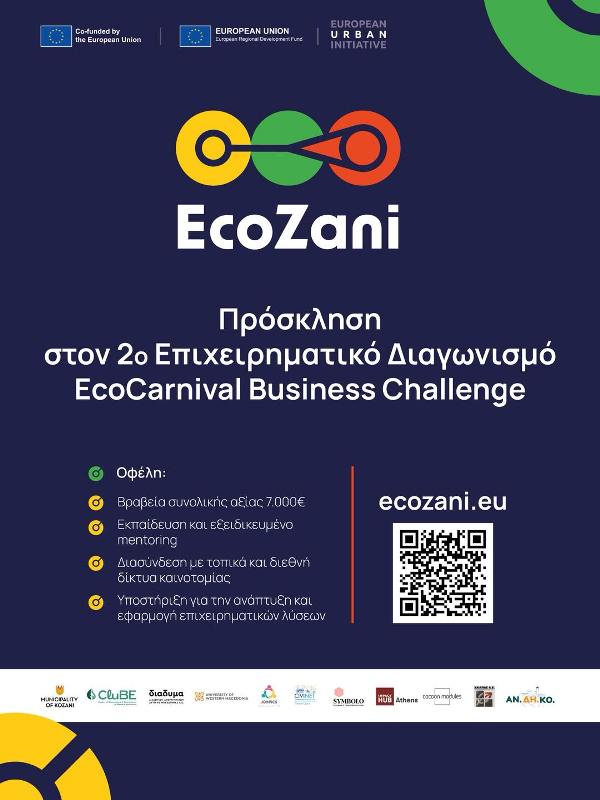 Το EcoCarnival Business Challenge σε προσκαλεί να συμμετάσχεις στον 2ο Επιχειρηματικό Διαγωνισμό, με στόχο τη μετατροπή της Αποκριάς της Κοζάνης στην πρώτη Αποκριά Μηδενικών Αποβλήτων, Μηδενικών Εκπομπών και Μηδενικών Αποκλεισμών (3Μ) στην Ευρώπη!