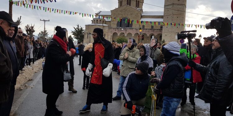 Αψηφώντας τις χαμηλές θερμοκρασίες, μεταμφιεσμένοι και θεατές διασκέδασαν στην παρέλαση που ξεκίνησε από την πλατεία Γεράνειας για να ολοκληρωθεί στην πλατεία της Χώρας, ανήμερα των Θεοφανείων.
