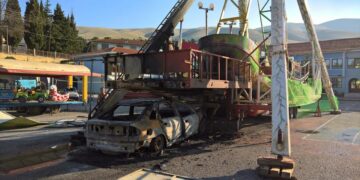 Αυτοκίνητο στο οποίο επέβαιναν δυο νεαροί, καρφώθηκε κάτω από το παιχνίδι με το καράβι του Λούνα Πάρκ Κατερίνα που βρίσκεται αυτές τις μέρες στη Σιάτιστα, και τυλίχθηκε στις φλόγες.