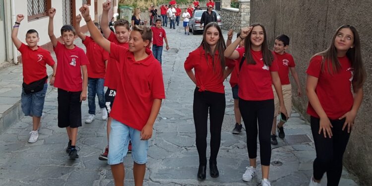 Η παρέα μαζεύτηκε στη γειτονιά του Μπούνου και ξεκίνησε το πέρασμα – κάλεσμα σε όλο τον κεντρικό δρόμο για το γλέντι που θα ακολουθήσει στην συνέχεια στο χώρο του Γυμνασίου Λυκείου Γ. Παπαγεωργίου.