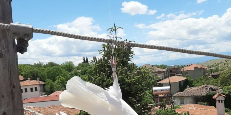 Δεν είναι η πρώτη φορά που ο ηλεκτρολόγος του Δήμου Βοΐου Γιώργος Καραμάνης, σώζει ένα περιστέρι που κρεμάστηκε πιασμένο με αγκίστρι στα καλώδια της ΔΕΗ.
