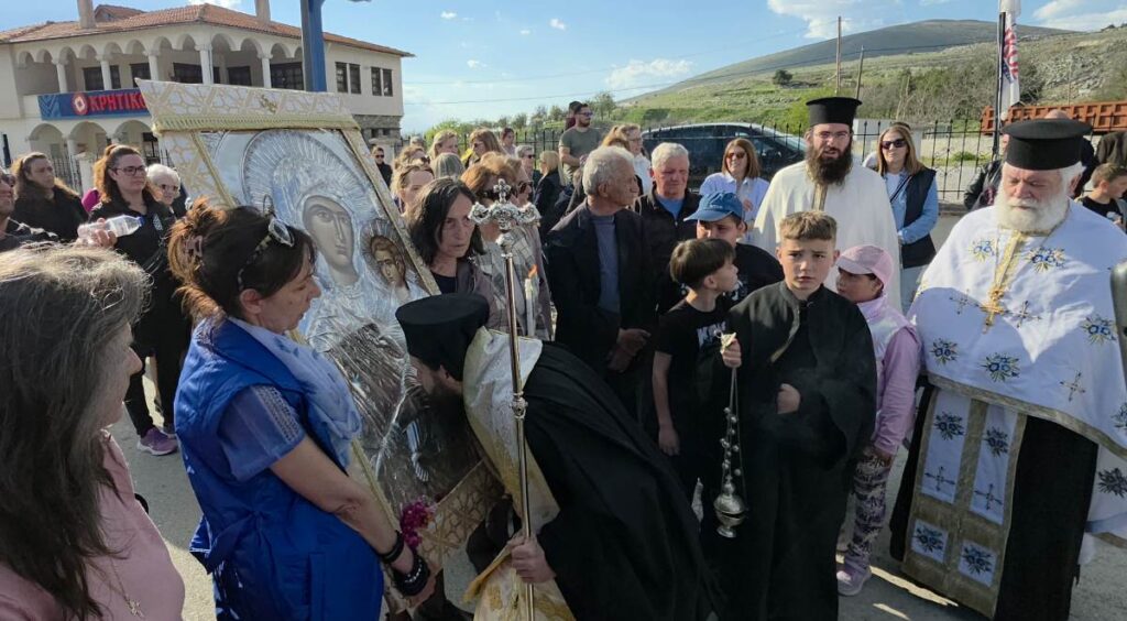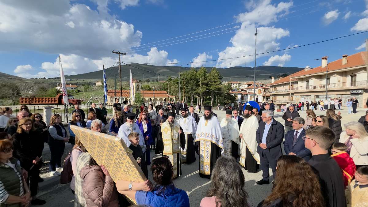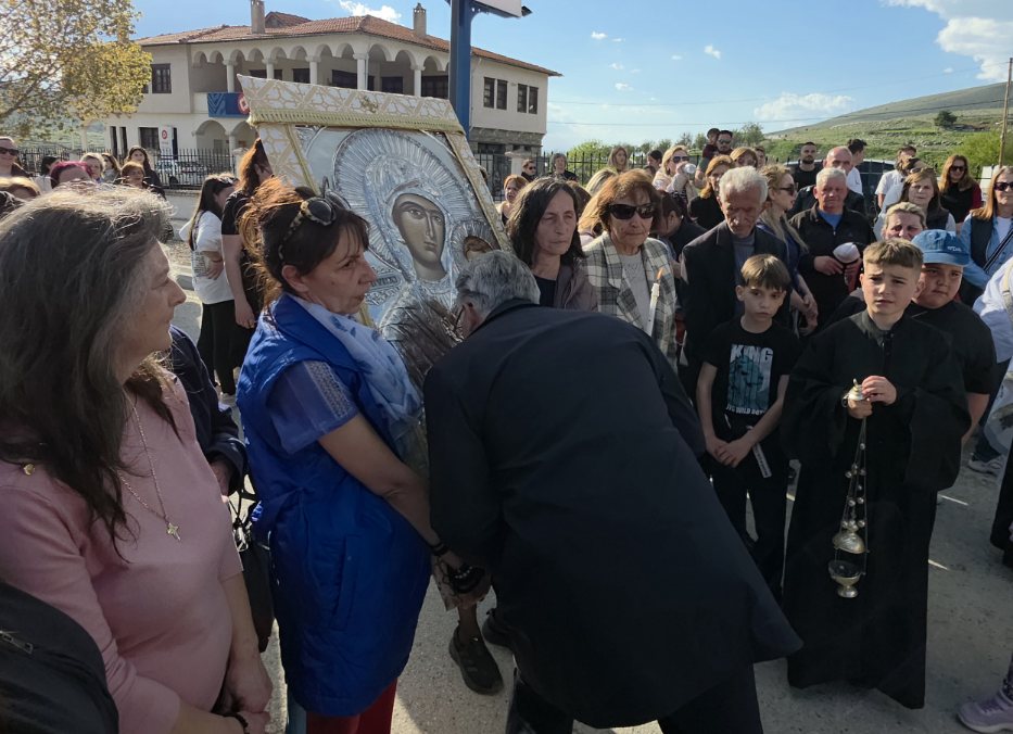 Εκεί ο Μητροπολίτης Σισανίου και Σιατίστης κ.κ Αθανάσιος μαζί με τους ιερείς, τον Δήμαρχο Βοΐου Χρήστο Ζευκλή, Αντιδημάρχους, τον Αναπληρωτή Περιφερειάρχη Λάζαρο Γκερεχτέ και ενορίτες τη συνόδευσαν στον Ιερό Ναό Αγίου Δημητρίου, όπου θα μείνει μέχρι την Πεντηκοστή.
