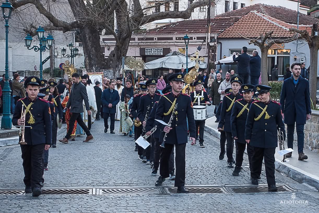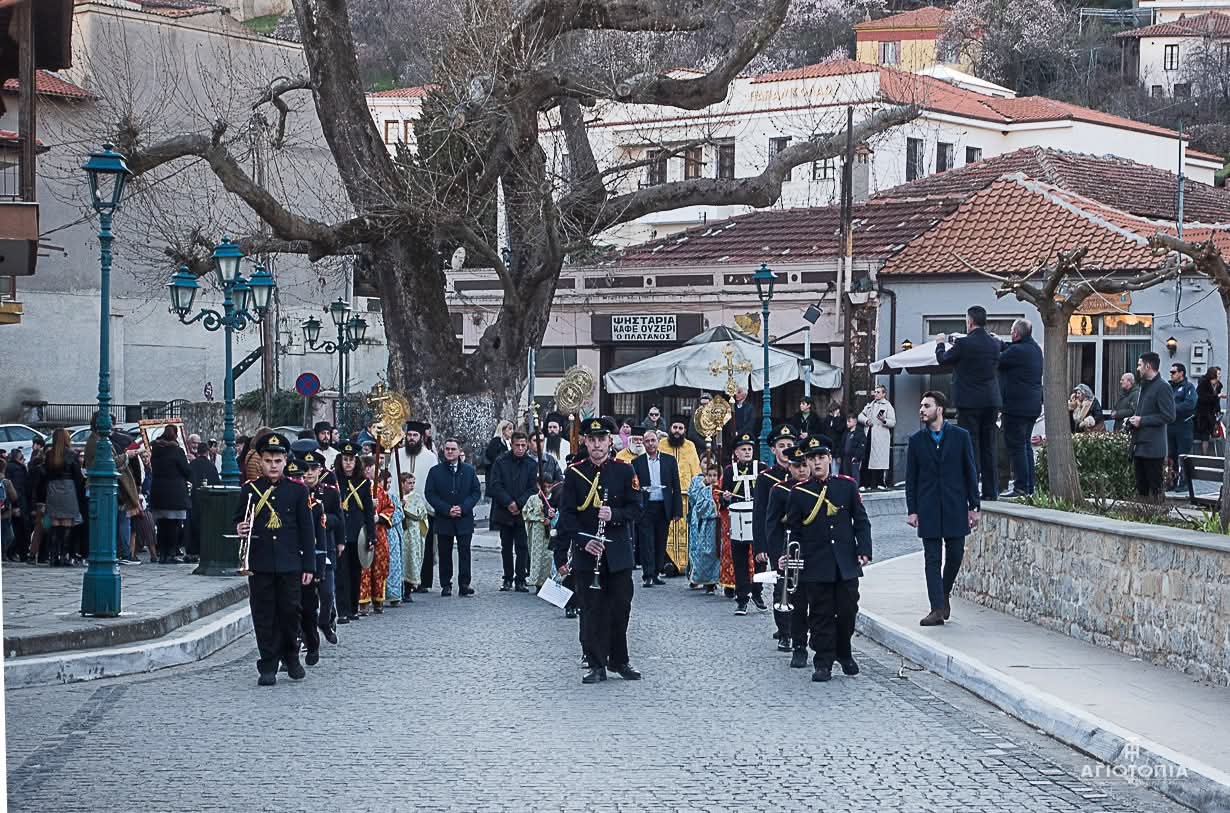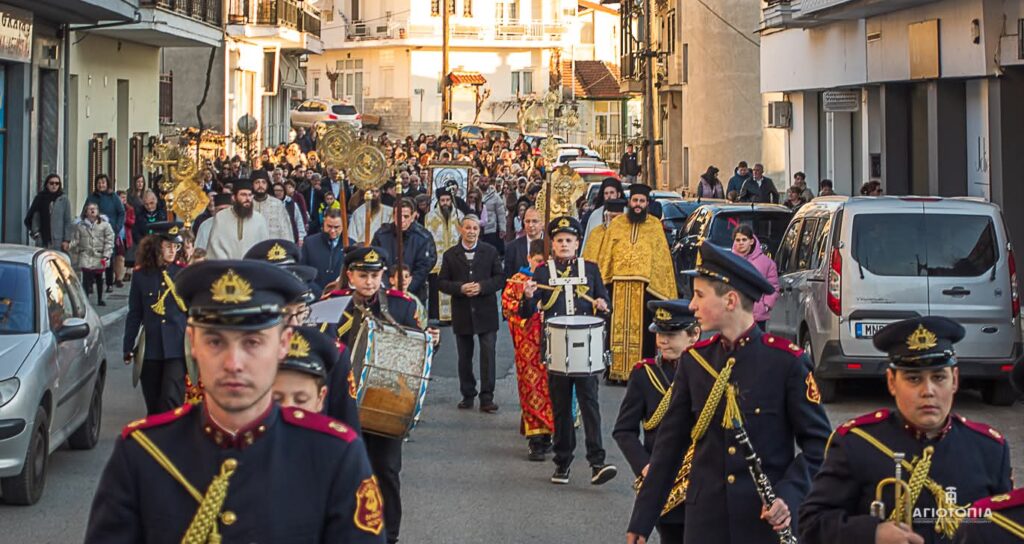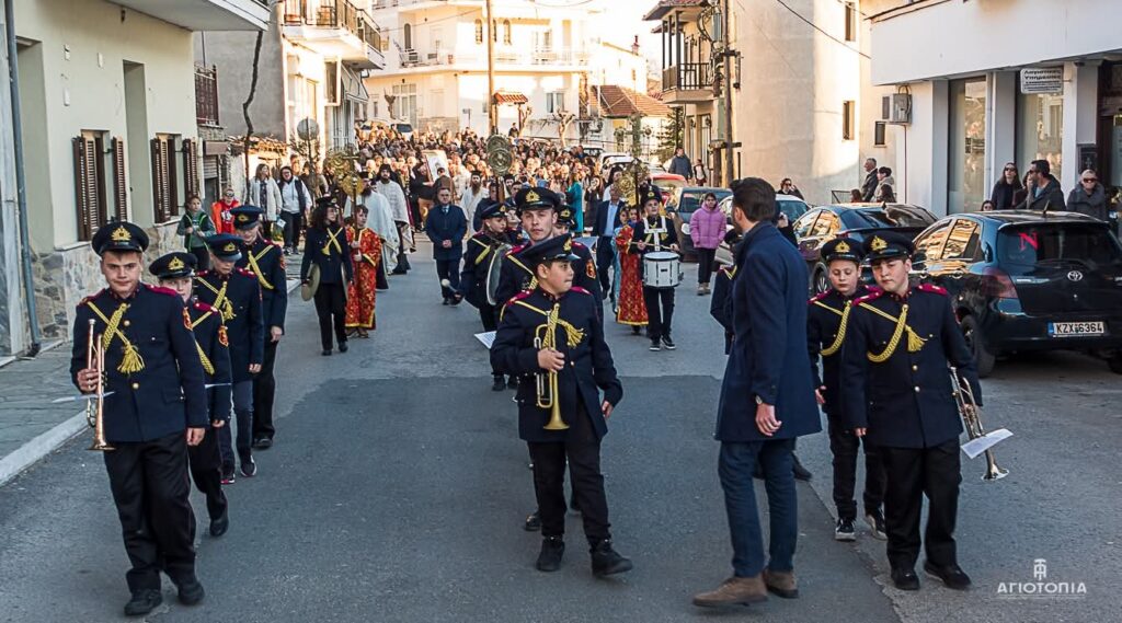 Με την συνοδεία της Φιλαρμονικής του Δήμου Βοΐου, η εκόνα θα μεταφέρθηκε στον Ιερό Ναό του Αγίου Νικολάου.