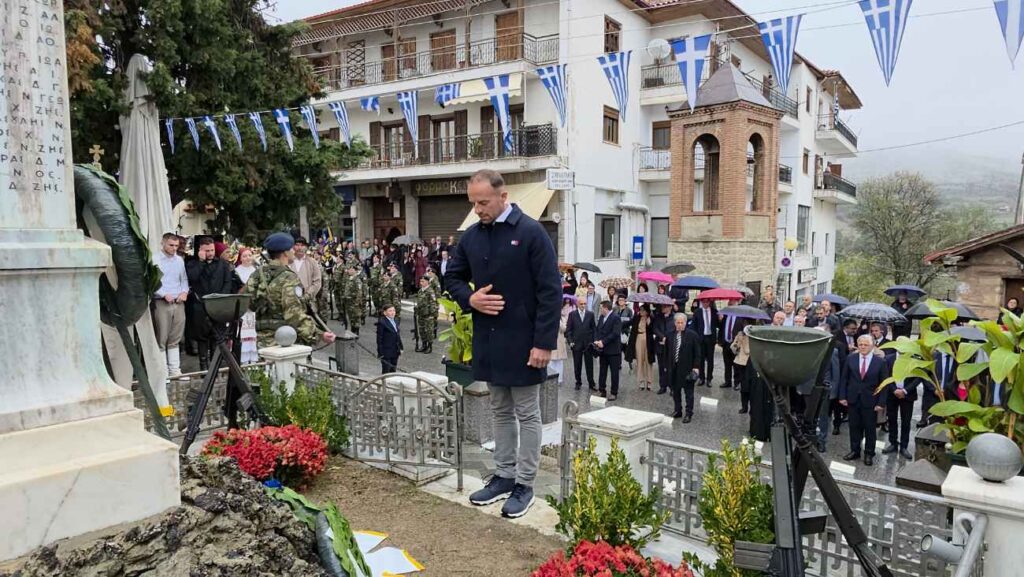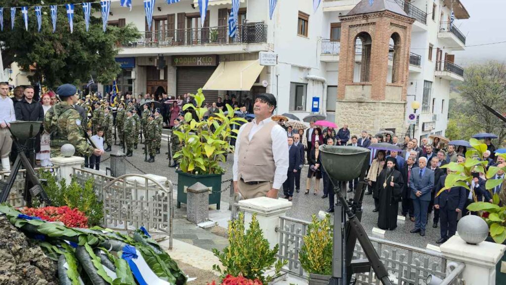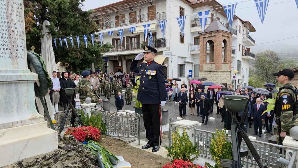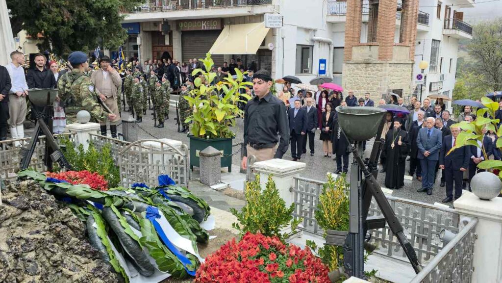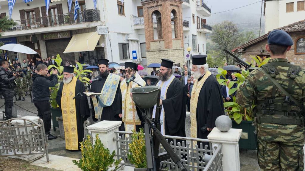 Πραγματοποιήθηκε υπό βροχή στη Σιάτιστα η Επιμνημόσυνη δέηση και κατάθεση στεφάνων υπέρ των πεσόντων στο Ηρώο της Πλατείας Δημαρχείου για την Επέτειο Απελευθέρωσης της πόλης.