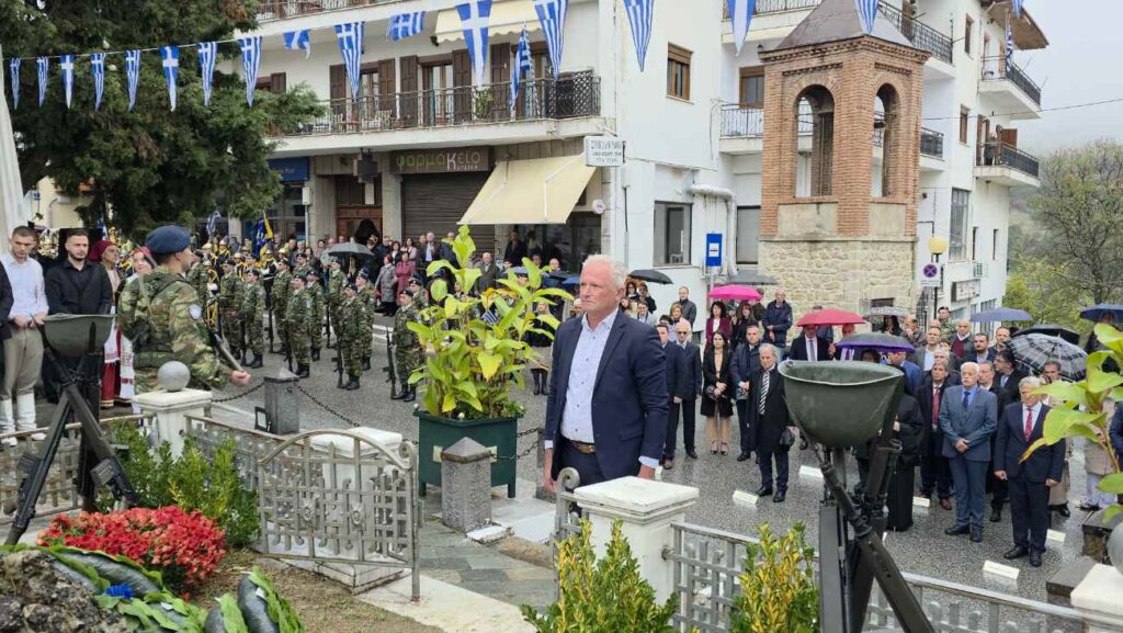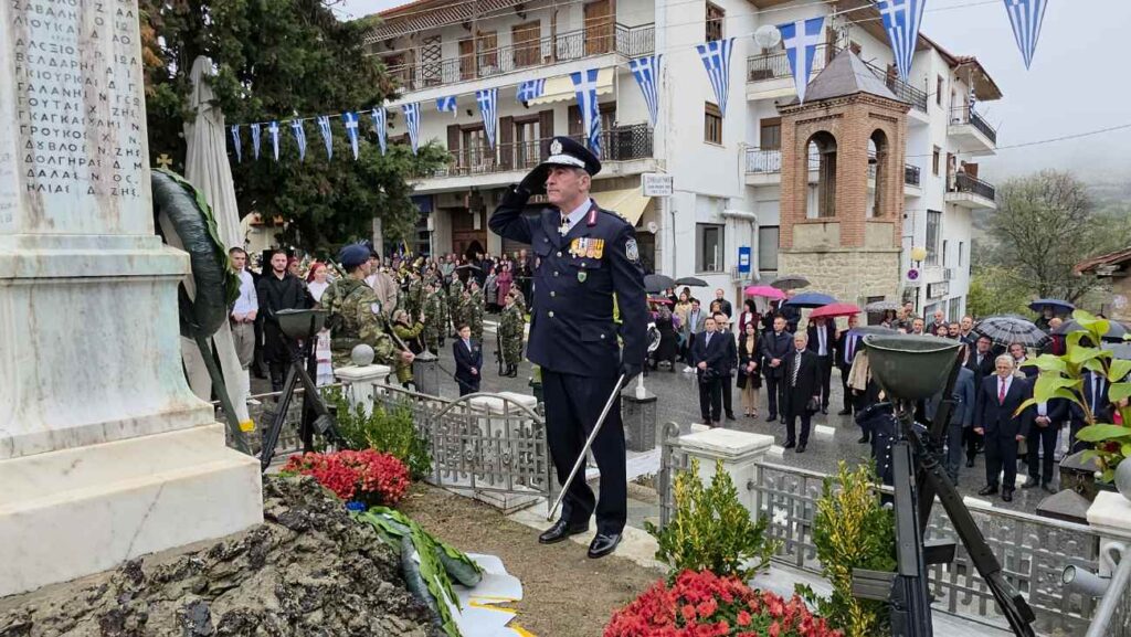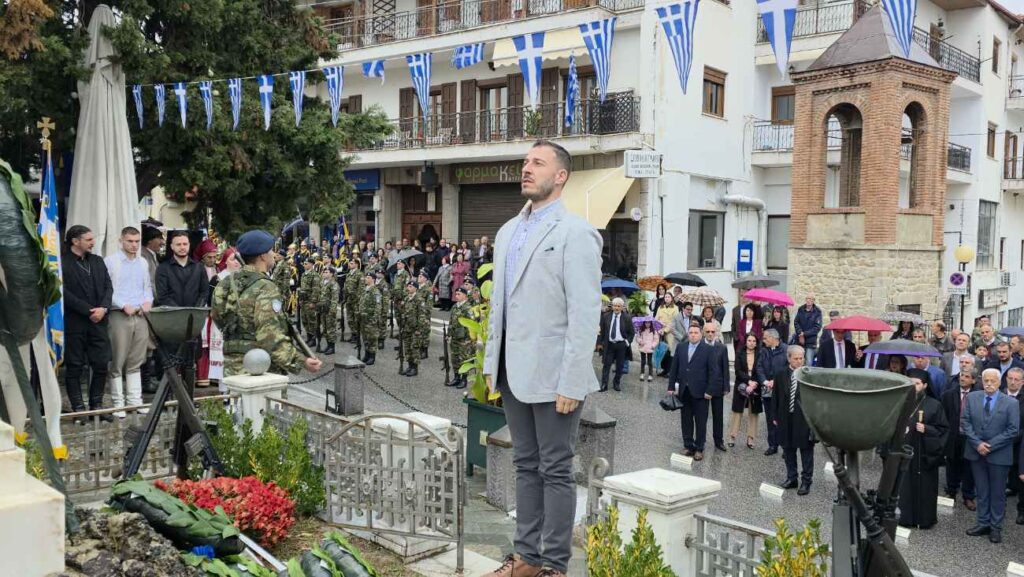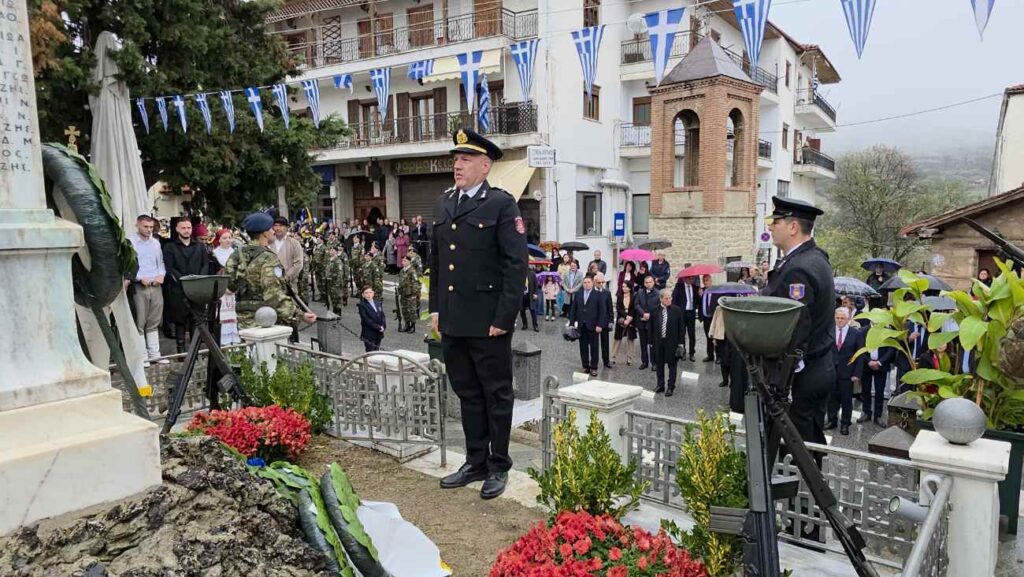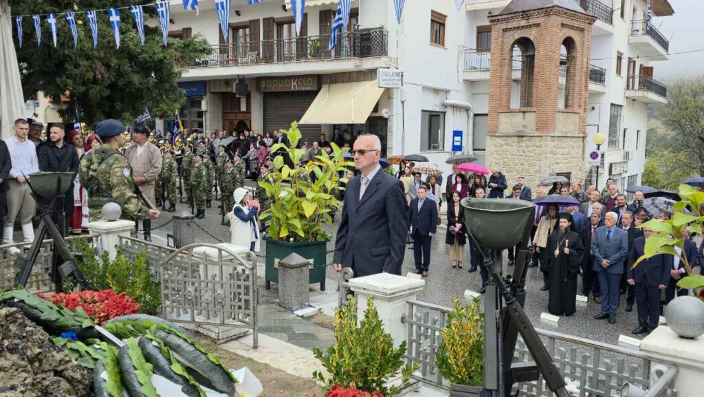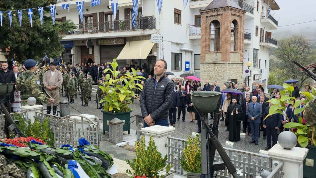 Πραγματοποιήθηκε υπό βροχή στη Σιάτιστα η Επιμνημόσυνη δέηση και κατάθεση στεφάνων υπέρ των πεσόντων στο Ηρώο της Πλατείας Δημαρχείου για την Επέτειο Απελευθέρωσης της πόλης.
