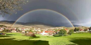 Με το φακό του αποτύπωσε ο Τάσος Γράβας, το ουράνιο τόξο, που αγκαλιάζει τη Σιάτιστα, μετά τη βροχή.