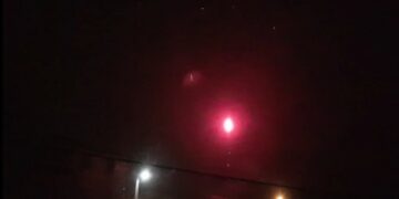 Λίγα δευτερόλεπτα μετά την έλευση του νέου έτους, με το χιόνι να πέφτει, ο ουρανός φωτίστηκε από τα πυροτεχνήματα που έριξαν κάτοικοι στη γειτονιά κοντά στο Μπούνο.