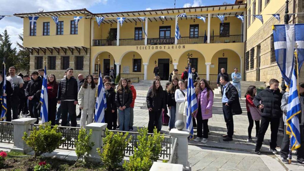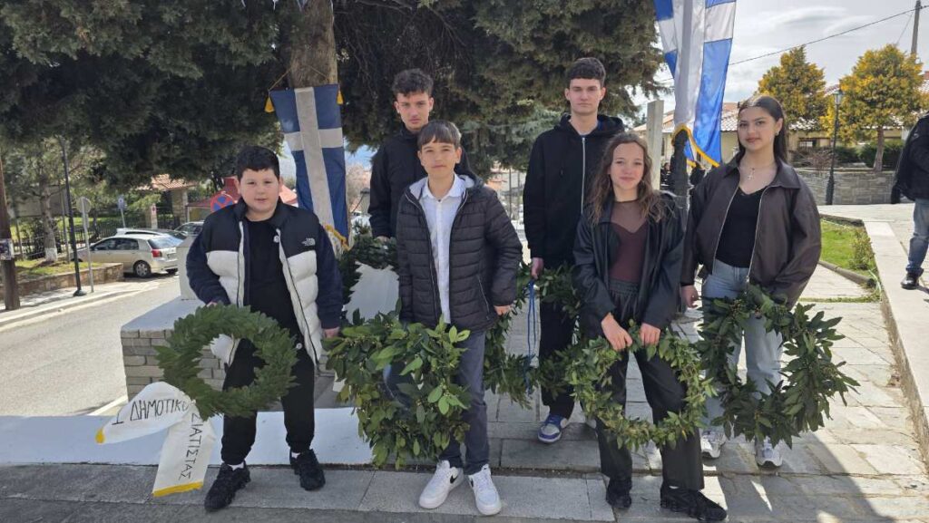 Πραγματοποιήθηκε η κατάθεση στεφάνων από τα σχολεία της Σιάτιστας στο μνημείο ηρώων την παραμονή της 25ης Μαρτίου.