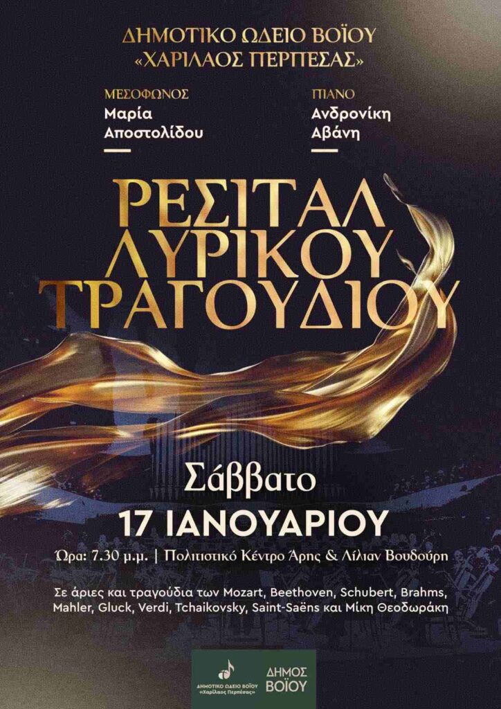Ρεσιτάλ Λυρικού Τραγουδιού στο Δημοτικό Ωδείο Βοΐου «Χαρίλαος Περπέσας»