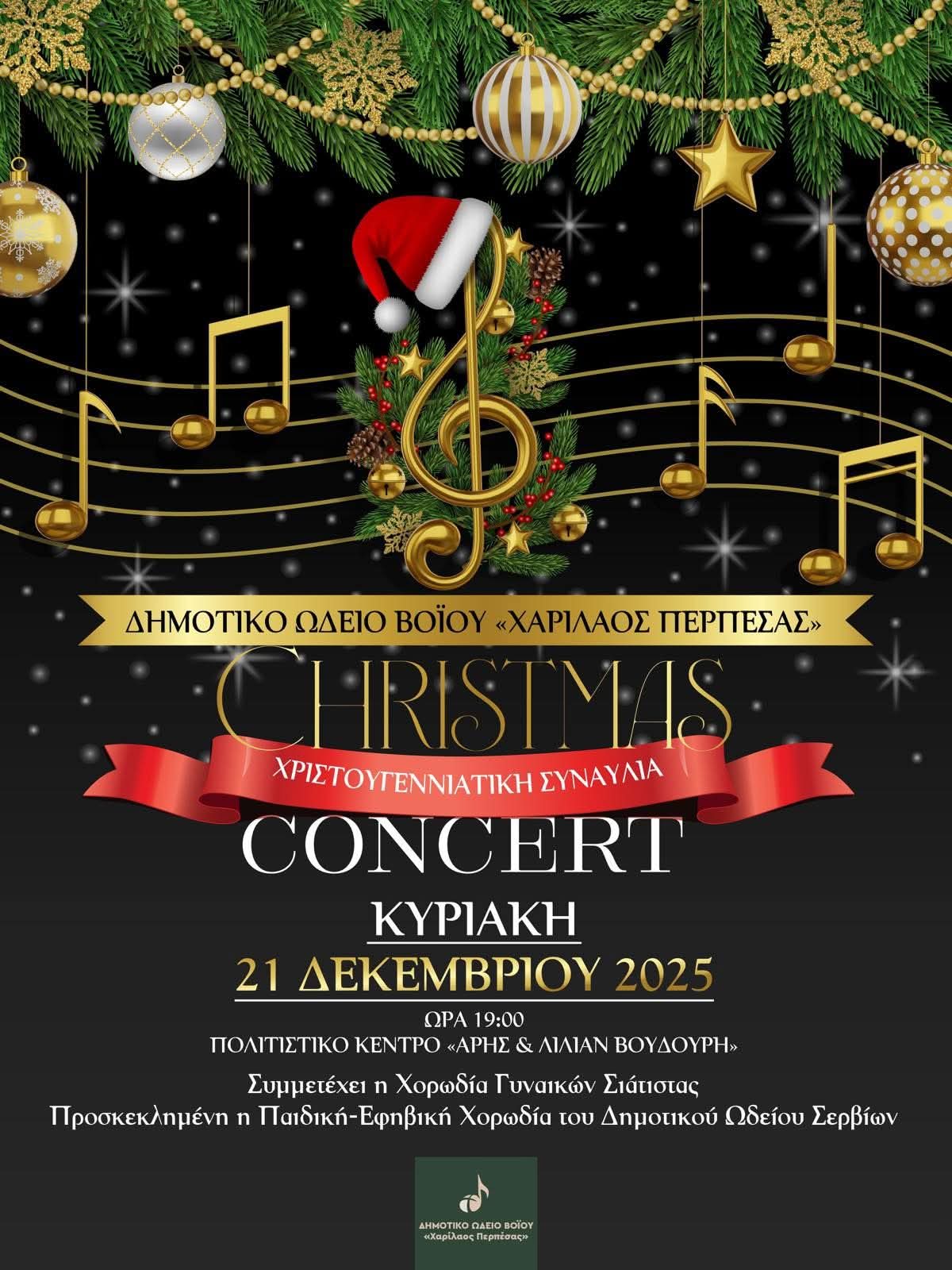Σήμερα στις 19:00 η Χριστουγεννιάτικη Συναυλία του Δημοτικού Ωδείου Βοΐου “ΧΑΡΙΛΑΟΣ ΠΕΡΠΕΣΑΣ”!