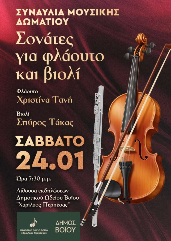 Σάββατο 24 Ιανουαρίου 2026, ώρα 19:30 στην Αίθουσα Εκδηλώσεων Δημοτικού Ωδείου Βοΐου «Χαρίλαος Περπέσας»