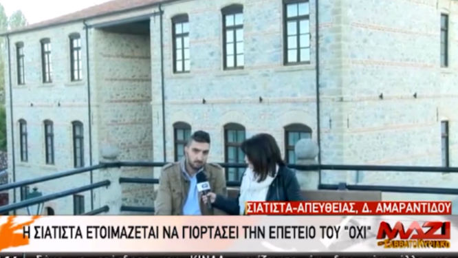 Σε ζωντανή μετάδοση από τη Σιάτιστα, στις 07:10 το πρωί και έχοντας ως φόντο το ιστορικό πέτρινο σχολείο, ξεδίπλωσε τις σκέψεις του για το εκπαιδευτικό πρόγραμμα «1940: Μια βαλίτσα γεμάτη ιστορία» που πραγματοποίησε η Δ’ τάξη με αφορμή την επέτειο του ΟΧΙ.