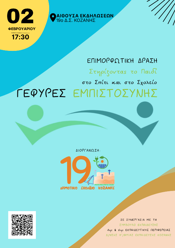 Ο Σύλλογος Γονέων & Κηδεμόνων του 19ου Δημοτικού Σχολείου Κοζάνης διοργανώνει επιμορφωτική δράση με θέμα: “Στηρίζοντας το παιδί στο σπίτι και το σχολείο”, τη Δευτέρα 2 Φεβρουαρίου 2026, στις 17:30 στην αίθουσα εκδηλώσεων του σχολείου