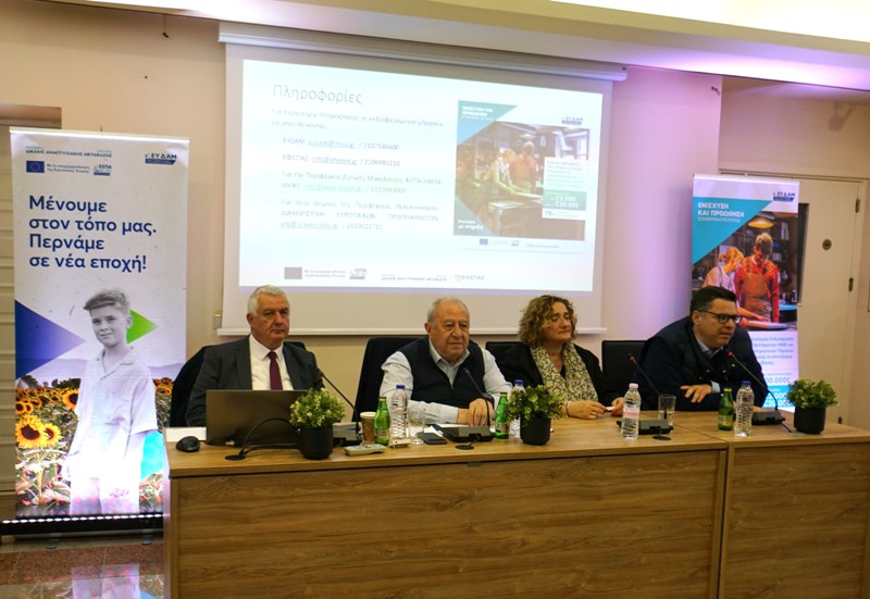 Το ενδιαφέρον της τοπικής κοινωνίας και των παραγωγικών φορέων εστιάστηκε στη νέα δράση επιχειρηματικότητας με τίτλο «Ευκαιρία Ενδυνάμωσης Υφιστάμενων ΜμΕ των Ηπειρωτικών Περιοχών Δίκαιης Αναπτυξιακής Μετάβασης». Πρόκειται για μία στοχευμένη πρωτοβουλία που αποσκοπεί στη στήριξη υφιστάμενων μικρομεσαίων επιχειρήσεων, ενισχύοντας επενδυτικά σχέδια που αφορούν: