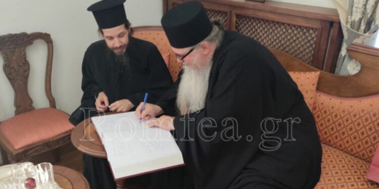 Τέλος η αντιπροσωπεία ευχαρίστησε τον Πρωτεπιστάτη Γέροντα Παύλο για την υποδοχή, ενώ υπέγραψαν και στο τετράδιο επισκεπτών.